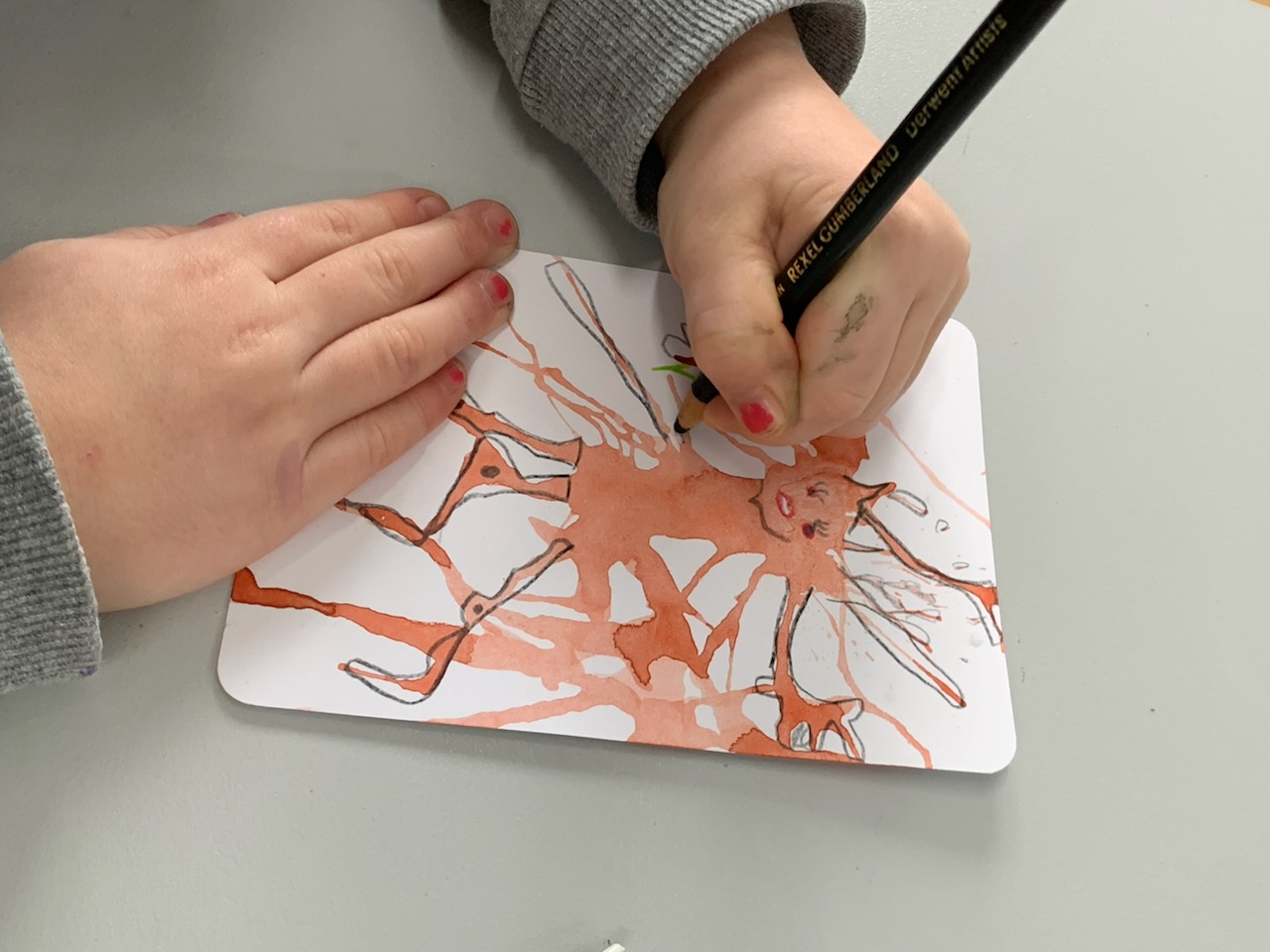 Toen de blaas kaarten droog waren, gingen we los om deze wezens (wat zie jij hierin?) te voorzien van pootjes, ogen of een snavel. En natuurlijk een goede naam.
